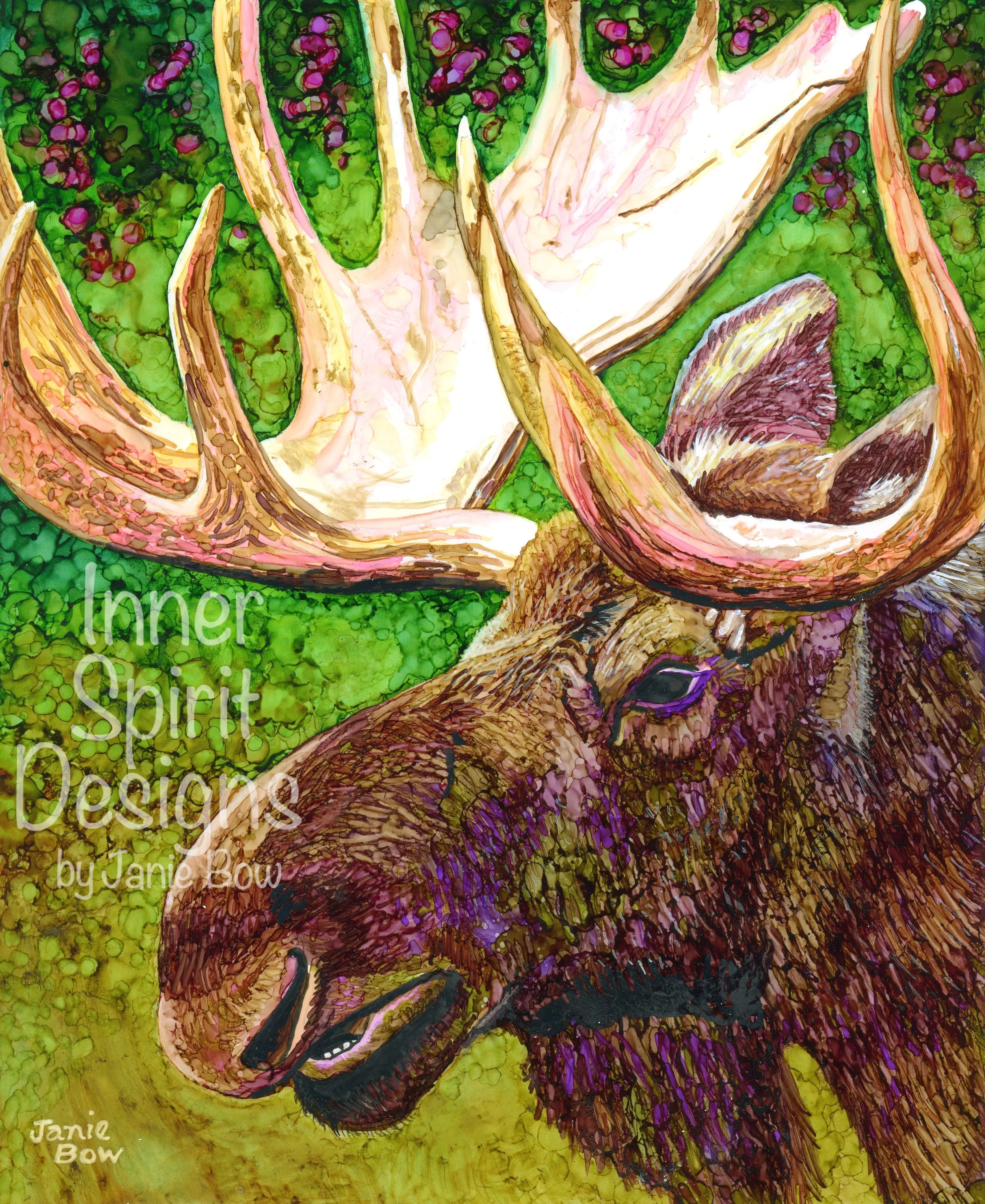 I've done many paintings that took great patience and persistence because of all the detail needed, and this was one!! You will note not only important color, but details that end up making this one of my favorite animal paintings. But it was worth it to have this outcome of the very proud moose.