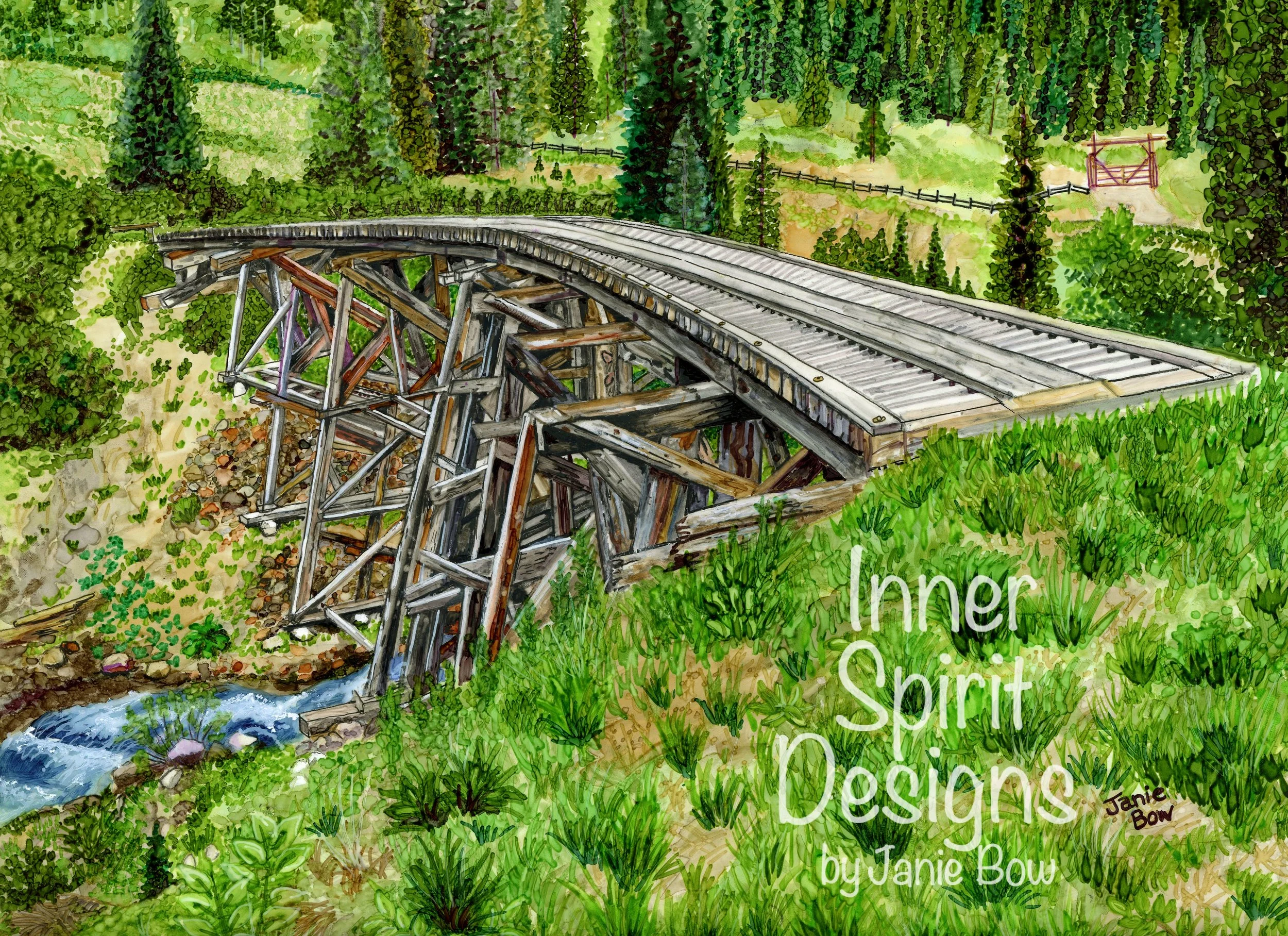 I enjoy painting scenes that I know can mean a lot to people who know of the existence of the place, and this is one. It's an old 1800's train trestle, one of the only that still exists in this great condition! Those wooden cross bars took a lot of time and patience!